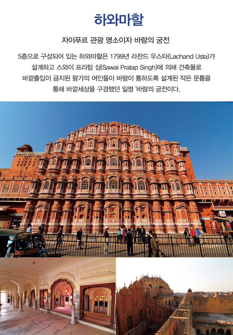 - 바깥출입이 금지된 왕가의 여인들이 바람이 통하도록 설계된 작은 문틈을 통해 바깥세상을 구경했던 일명 바람의 궁전