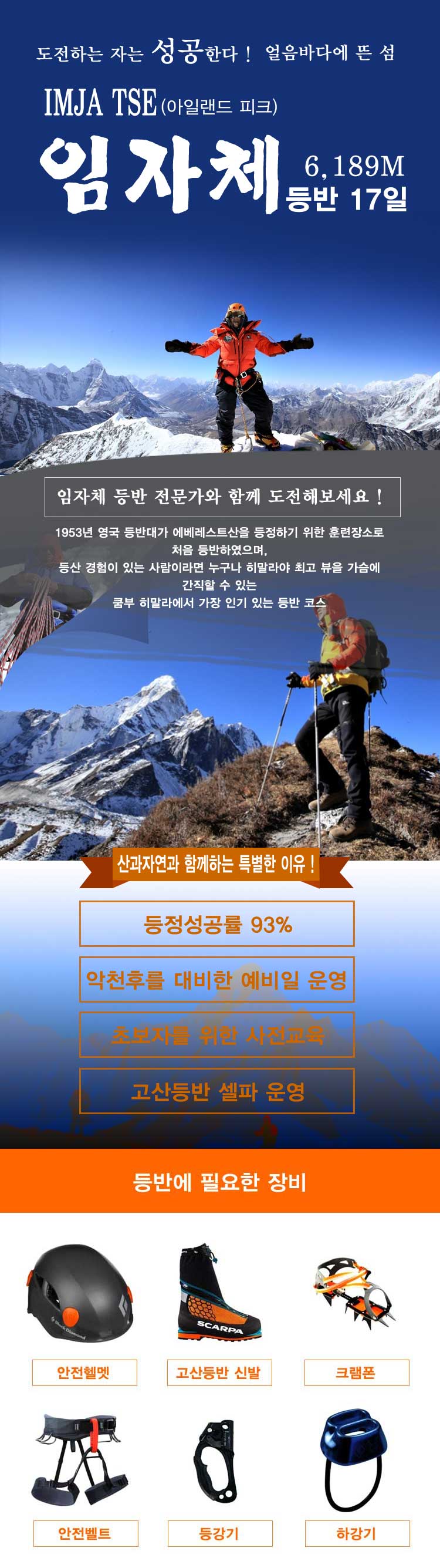 * 필독 : 날씨등으로 인해서 9일차 임자체 정상등정이 불가하여, 예비일에 등정을 하는 경우 장비 대여비가 추가 됩니다