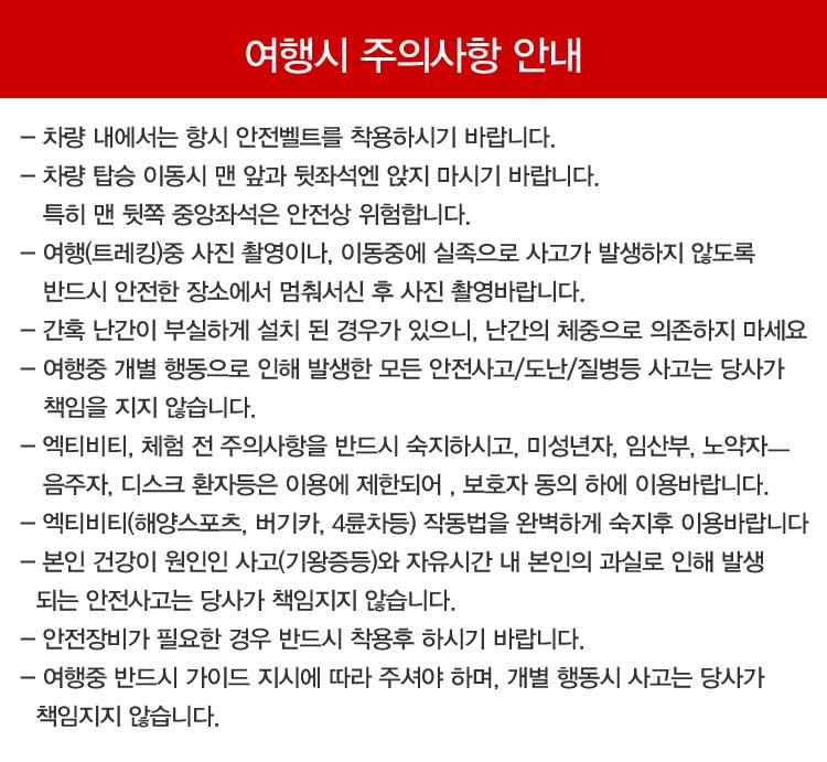 ・본 상품은 현지사정(교통, 기상변화 등)에 의해 일정이 변경 될 수 도 있습니다.